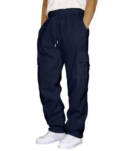 • Tie Band Running Pants Lace up Loose Waist Wide Foot Solid Color Pocket Loose Wool Sweatpants Men's Clothing Jeans